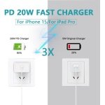 【Compatible with iPhone 15 Fast Charger 】 USB C Wall charger provides 20W power output and charges your phone up to 50% more in just 30 minutes, which is 3 times faster than the original charger and saves you more than 1 hour.