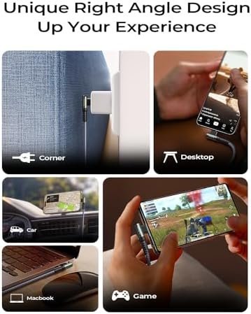 🔋”L” Connector Design, Never Bending & Breaking: This right angle usbc to usbc cable charge with an innovative 90 degrees “L” design. It’s more convenient and comfortable for playing games, watching videos, reading e-books while charging. A comfortable grip brings you an immersive operating experience, It completely solves the troubles of ordinary wires that are easy to block hand, unintentionally interrupted and the bending of the connector while using.