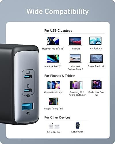 Anker USB C Charger (GaN II 100W), 3 Port Fast Compact Wall Charger for MacBook