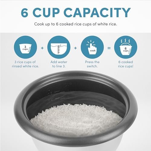“Enjoy easy home cooking with the AROMA 6-Cup (Cooked) Pot-Style Rice Cooker. Restaurant-quality rice. Healthy meals. Delicious one-pot dishes. Prepare all this and more at the flip of a switch! Aroma takes the cook out of home cooking – turning kitchen time into your time! Help the kids with homework, get creative at play time or pick up that novel you’ve been waiting to dive into. All while delivering hot, hearty and healthy meals the entire family will love.This convenient cooker’s compact capacity perfectly cooks 2 to 6 cups of any variety of rice. Once the rice has finished, it will automatically switch to Keep-Warm so there’s no need for monitoring or stirring. It’s also perfect for oatmeal, chili, jambalaya, soups and so much more! And when the cooking is done, the inner cooking pot and all accessories remove for easy cleanup in the dishwasher.”