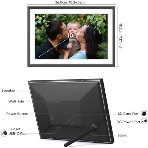 【Exceptional Display Quality】: The frameo digital frame wifi 10 inch equipped with high-quality HD 1280*800 Resolution (16:10 Aspect Ratio) IPS touch screen perfect for displaying photos and videos. The images come to life with remarkable clarity, vivid colors and sharp details. Whether it’s a scenic landscape, a candid family moment or a snapshot of your latest adventure, the frame digital preserves the essence of each image with impressive fidelity.