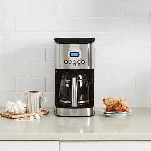 Turn up the flavor and the temperature on your coffee with the Cuisinart 14 Cup Programmable Coffeemaker! Using our cutting edge coffee technology, the 14 Cup Programmable Coffeemaker can give you hotter coffee without sacrificing taste. Choose a regular or bold flavor profile and set the brew-time up to 24 hours ahead so your next cup is ready when you are. The backlit LCD is easy-to-read, a ready tone can be turned on or off, and an indicator light signals when it’s time to decalcify. Refer to the user manual for troubleshooting steps. Features: Hotter Coffee with expert coffee-making technology to ensure hotter coffee temperature without sacrificing flavor or quality|Brew Strength Control allows you to select Regular or Bold coffee flavor|Fully Automatic with 24 hour programmability self clean 1–4 cup setting auto-off (0–4 hours) and optional ready alert tone|14 Cup Glass Carafe with decorative stainless steel handle|Easy-to-View Water Window for accurate filling Brew Pause™ feature lets you enjoy a cup of coffee before the brewing cycle has finished 60-Second Reset recalls settings and position in the brewing process in case of loss of power|Gold-Tone Coffee Filter and Charcoal Water Filter|Limited 3-Year Warranty.