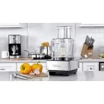 The Cuisinart DFP-14BCNY custom food Processor has an extra-large Feed tube that holds whole fruits and vegetables. Features a 14-Cup work bowl, 4mm stainless steel Medium slicing disc, stainless steel shredding disc, and chopping/mixing blade. Includes a spatula and recipe book.