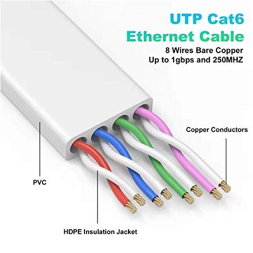 【PREMIUM MATERIAL】Our 50 feet ethernet cable is also made of 8 copper wires. The performance of UTP (Unshielded Twisted Pair) can be as high as 250 MHz and is very flexible. It can be tightly wound in a corner without affecting the speed. Crosstalk, noise and interference rarely occur
