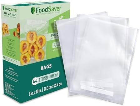 Whether portioning food from bulk shopping or storing leftovers after the holidays or a successful soiree, FoodSaver heat-seal bags make it easy to store food with confidence. The 44-count box of quart-size bags works with any FoodSaver heat-seal vacuum sealing system (not included). Each pre-cut bag measures 8 by 10 inches, offering plenty of room for storing small items or individual portions of food. Store anything from cuts of meat and fish in the freezer to fresh fruits and vegetables in the fridge, even cookies, crackers, and other snacks and dry goods in the pantry.