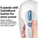 6 speeds with QuickBurst button. This versatile hand mixer has 6 different speed options, plus a QuickBurst button for an extra burst of power when you need it. It easily handles a variety of ingredient, from nuts to dry flour and creamy butter. Rest stabilizer Six speeds with Quick