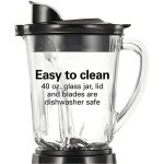 EASY TO CLEAN WITH DISHWASHER SAFE GLASS JAR, LID AND BLADES: Blending multiple servings is easy with the glass jar that holds 40 ounces; The jar, lid and removable blades on the blender are all dishwasher safe