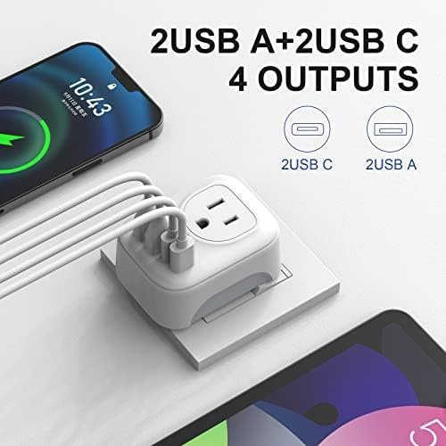▶【Power Plug USB C Fast Charge 】◀ The European plug adapter’s total output of 4 USB ports is 5V/3.4A. Built-in smart technology can auto-detect charged devices. USB A ports can charge up to 2.4A, and the USB C port can charge up to 3A, allowing you to charge 6 devices simultaneously. Ideal for cell phones, tablets, power banks, etc.