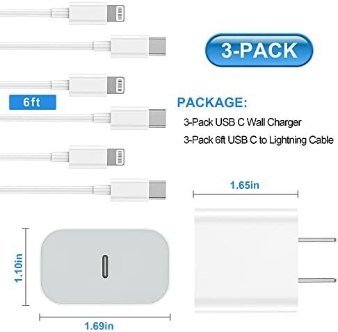 【Portability Design】3 Pack USB C fast charger with 6ft type C to lightning cord suit for different occasions. A Portability and lightweight design, you can use your devices while charging with a adapter in your living room, sofa, office and traveling.