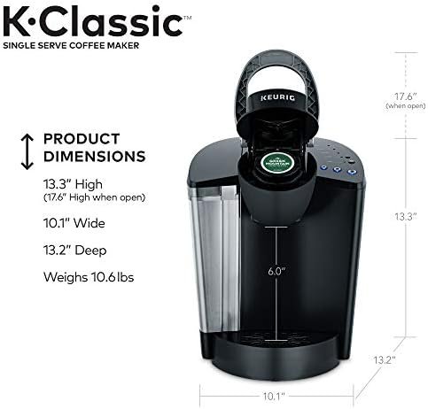 The Classic Keurig K-Cup Single Serve Coffee Maker, and a perennial best-seller, the Keurig K-Classic brews a rich, smooth, and delicious cup every time with the quality you expect from Keurig. Simple touch buttons make your brewing experience stress free, and multiple K-Cup pod brew sizes help to ensure you get your perfect cup. Whether you like your coffee strong, mild, decaf, or flavored, you can brew all of your favorites with the Keurig K-Classic– and with large 48oz water reservoir, you can brew 6+ cups before having to refill. Discover hundreds of K-Cup pod varieties from all of the brands you love, including Green Mountain Coffee, Starbucks, and Lipton, and enjoy coffee, tea, hot cocoa and more. Also available in a two fun colors to complement your décor, and compatible with the Keurig Classic Series My K-Cup Reusable Coffee Filter, so you can brew your own ground coffee.