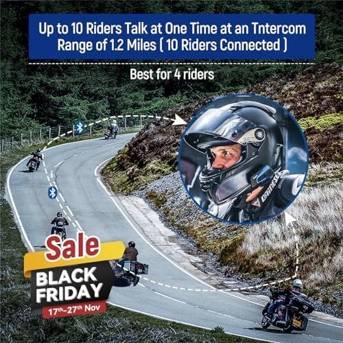 LEXIN Motorcycle Bluetooth Headset with Music Sharing, 2pcs B4FM 10 Riders