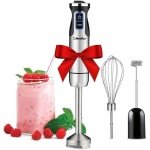 3 Easy Attachments – Stick blender with: (1) Stainless Steel Blending Shaft to blend shakes, soup, baby food; (2) Frother for foaming all milk types; (3) Whisk for whipping cream or batter.
