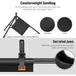 Stable Backdrop Stand: The aluminum alloy backdrop stand is durable and stable with load capacity up to 8.8lb/4kg. Two empty nylon sandbags are included for added stability