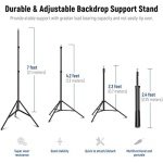 Adjustable Height & Width: With adjustable height (27.56”–7’ / 70cm–2.1m) and width (5’–10’ / 1.5-3m), the backdrop support system holds your backdrop in place and helps you create different backgrounds for photography work
