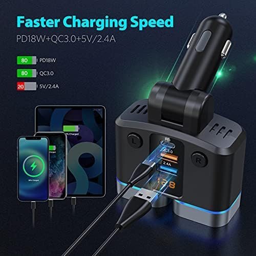 【150W Output & Independent Switches】: The 2 cigarette lighter sockets feature independent ON/OFF switches. You don’t need to unplug the car charger adapter repeatedly. Based on a total output power up to 150W, the cig-lighter can provide the maximum charging speed for various devices.