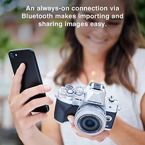 Olympus OM-D E-M10 Mark IV Mirrorless Camera, Silver, with 14-42mm EZ Silver lens, 5-axis Image Stabilization, 20 MP Sensor, 3-inch Tilting Touchscreen, Easy Shooting Modes, Wi-Fi/Bluetooth, and 4K Video.