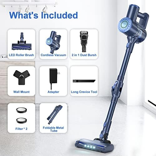 🏚️【POWERFUL SUCTION & LARGE-CAPACITY BATTERY】: Vacuum cleaner bagless features a powerful motor with 20,000Pa suction / 2 speed levels , household vacuum cleaners can easily complete deep cleaning for carpets, hardwood floors, and pet hair. Equipped with 6* Large-Capacity Batteries and Super Fast Charging, the long runtime of this vacuum cleaner carpet can meet your daily cleaning needs perfectly.