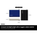 Samsung T7 Shield Portable SSD delivers high performance on-the-go, not matter the terrain. It has an IP65 rating for water** and dust* resistance, with Dynamic Thermal Guard to manage heat control. Transfer huge files instantly. USB 3.2 Gen 2 and PCIe® NVMe™ achieve soaring sequential read/write speeds of up to 1,050/1,000 MB/s***, allowing you to edit directly from the drive. The rugged design and advanced outer elastomer add extra durability to even endure a 9.8 foot drop****. The T7 Shield is compatible with PC, Mac, Android devices, gaming consoles, and more*****. Included in the box are USB Type C-to-C and Type C-to-A cables****** for added convenience. Comes with a 3 Year warranty.*Consistent with IP65 rating, tested under controlled conditions: 2kg/m3 of active dust with a pressure under 2kPa for 8 hours. Dust resistant capabilities may vary depending on the actual conditions. **Consistent with IP65 rating, tested under controlled conditions: water flow of 100kPa for 3 minutes. Water resistant capabilities may vary depending on the actual conditions. ***Performance may vary depending on host configuration. To reach maximum read/write speeds of up to 1,050/1,000 MB/s, respectively, the host device and connection cables must support USB 3.2 Gen 2 and the UASP mode must be enabled. Test system configuration: ASUS Z270 ROG MAXIMUS IX HERO (USB 3.2 Gen2 Type-C), Intel(R) Core(TM) i7-7700K CPU @ 4.20GHz, OS- Windows 10 19H2. ****Tested to withstand 9.8-ft (3 meters) drop under controlled conditions. Drop resistance capability may vary depending on the actual environmental conditions. *****Compatibility with host devices may vary. Some operating systems may require T7 Shield reformatting. ******T7 Shield is compatible with USB 3.0 and USB 2.0. *******Source: 2003~2021 OMDIA data: NAND suppliers’ revenue market share.