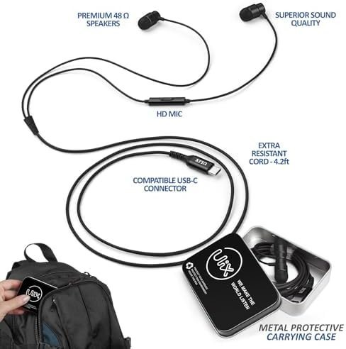 UliX Rider USB C Headphones, 5 Years Warranty, Magnetic USB-C Earbuds for iPhone