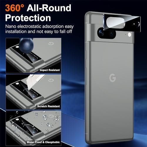 💎【Camera Protector Double Protection】Pixel 8 Camera Lens Protector made with an electroplated sapphire super hard AF film camera protector screenNano electrostatic automatic adsorption technology, easy to install and not easy to fall off, without any bubbles or white edges.