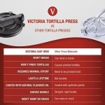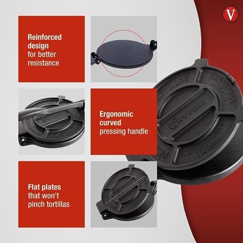 Give your cooking and tortillas the upgrade they deserve with high-quality cast-iron cookware. Cast-iron cookware is superior to traditional cookware because it offers better heat retention and durability and outlasts more conventional tortilla presses. The Victoria Cast-Iron Tortilla Press is commercial-grade and built from high-quality cast iron with the cook in mind. It features a reinforced design with engineered plates that avoid pinching and a reinforced base for better resistance.